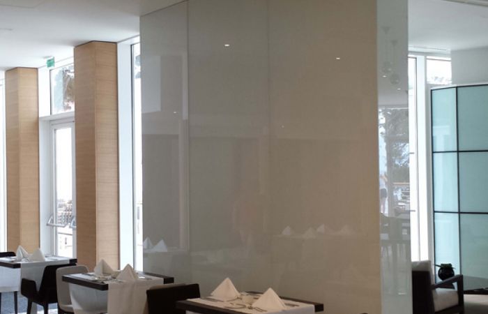 LACOBEL T é o único vidro pintado temperável em todo o mundo e agora produzido no Brasil. Com uma perfeita uniformidade de cores e incomparável resistência mecânica após o processo de têmpera.